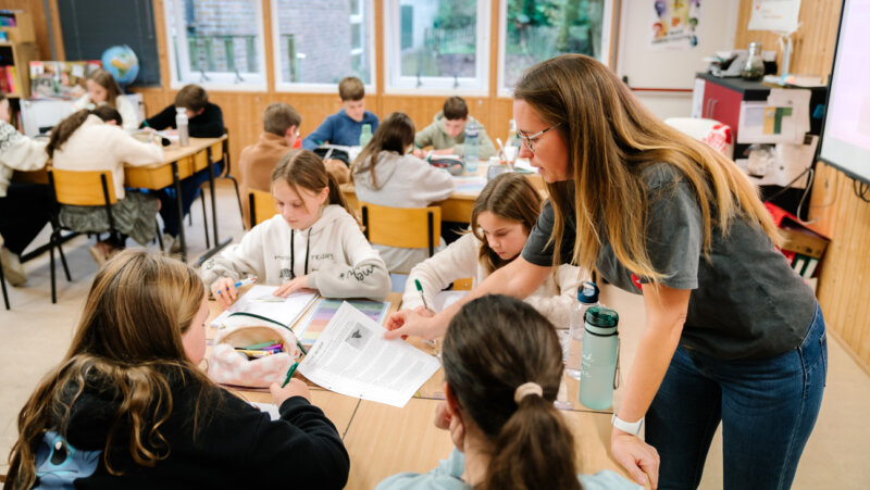 “Natuurlijk kan je de snelle leerlingen eens uitleg laten geven aan wie nog op zoek is, maar niet elke leerling houdt van die rol. Wie de leerstof al onder de knie heeft, kan zelf een toets opstellen, met een modelantwoord erbij. Voor hen een nuttige syntheseoefening, voor klasgenoten waardevol oefenmateriaal.”