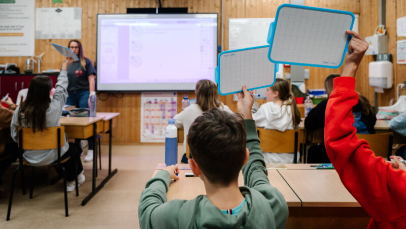 “Selecteer beter 1 manier om via beeld te werken (afbeelding, bordschema, slide) en combineer die met 1 manier om verbaal te werken, bijvoorbeeld door uit te leggen. Een paar kernwoorden bij je afbeelding kunnen uiteraard wel houvast bieden, maar mijd volle paragrafen op een slide die je dan ook nog eens voorleest. Focus op de essentie. Zo hou je leerlingen alert.”