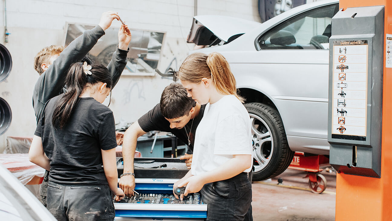 Cindy: “Voor het praktijkmateriaal (schroevendraaiers, hamers en tangen of scharenset en haardroger) gingen we gestructureerder te werk. Een paar jaar geleden beslisten we met de vakwerkgroep Mechanica/Carrosserie dat leerlingen geen individuele werkkoffers meer moesten aankopen.”