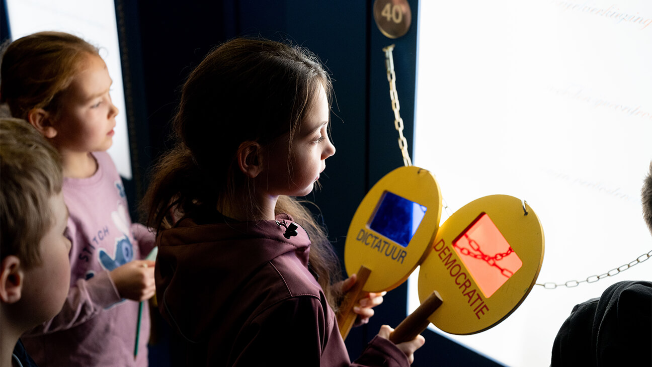 In de Werkkamer van de Koningleren ze het verschil tussen een democratie en een dictatuur. Met een speciaal kijkglas lezen ze teksten waarbij ze ontdekken waar je wel of niet je eigen mening mag zeggen, hoe de politiek eruitziet en wat mag en niet mag. Achter de luikjes van een groot schilderij leren ze zelfs enkele Arabische woorden.