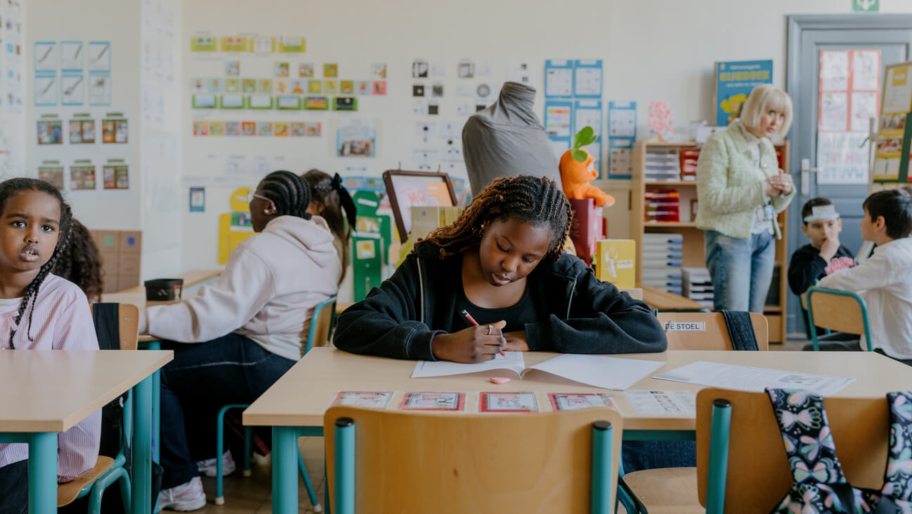 Katleen: “In mijn klas zitten kinderen van hoogopgeleide magistraten die in Brussel werken naast kinderen die voor bommen gevlucht zijn en voor wie Nederlands soms de derde of vierde taal is. Ze komen uit de Brusselse rand, Marokko, Armenië, Somalië, Bulgarije, Brazilië, Macedonië, Jordanië, Turkije en Ghana.”