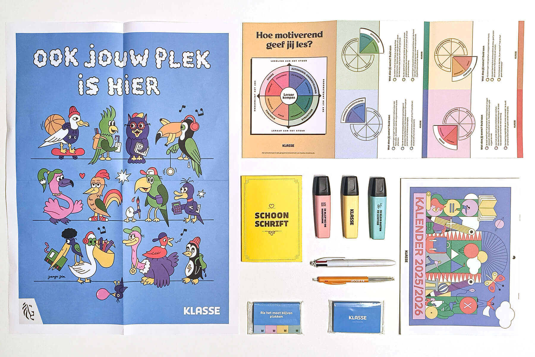 Een poster of fiches om je lessen nog sterker te maken, onze gegeerde schoolkalender, of dat ene kleurrijke Klasse-hebbeding dat je nog miste in je pennenzak. En waar je collega’s jaloers op zullen zijn. Bij elk nummer krijg je van ons exclusief gerief!