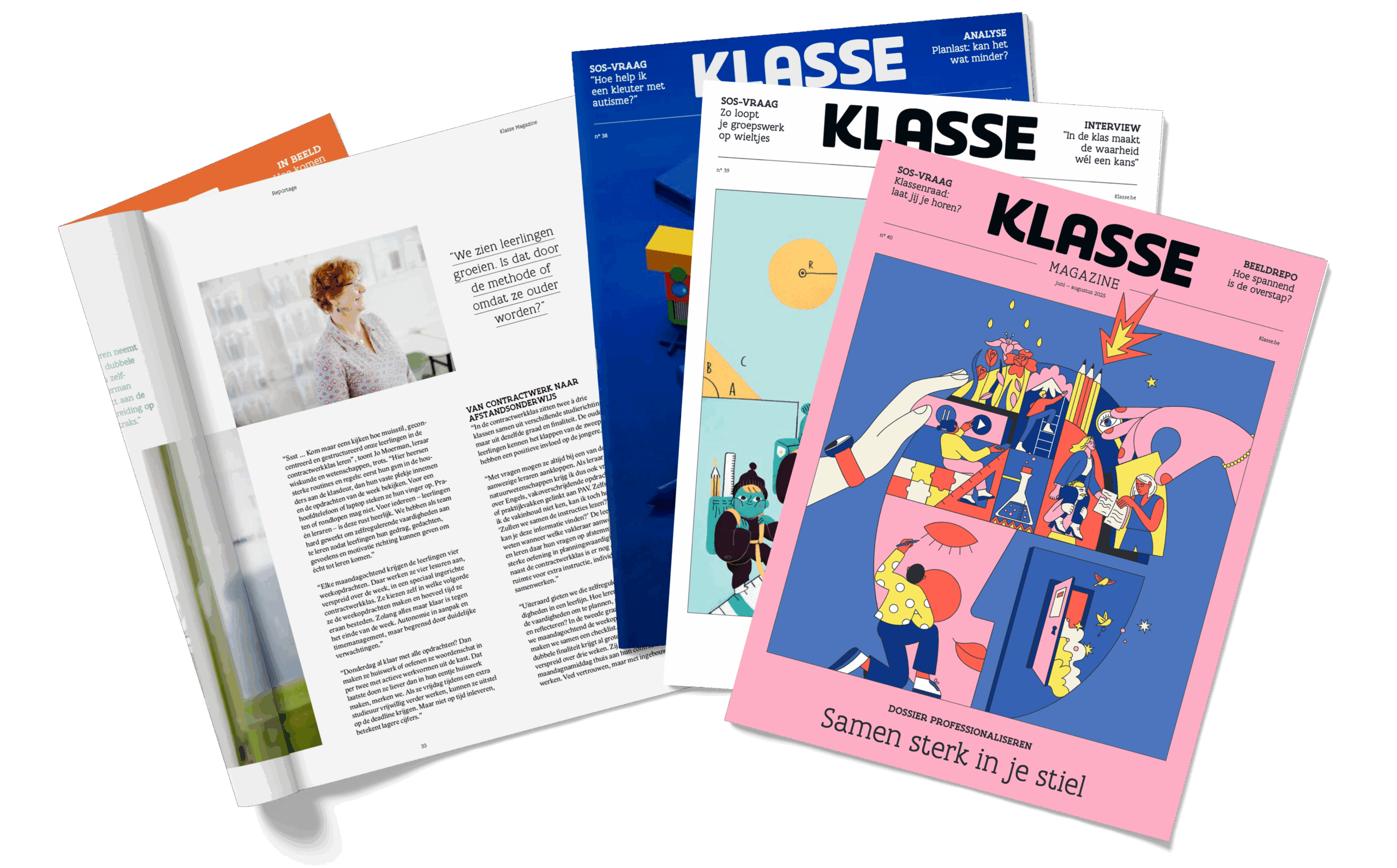 Reportages over thema’s die leven in elke lerarenkamer, verhalen van echte leraren, onderbouwde inzichten van onderzoekers, tips om je lessen te verrijken … Klasse Magazine lezen = professionaliseren. En die nieuwe inzichten delen met je team!